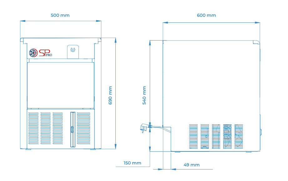 Ta ledomat, kapacitete 45 kg/24 h, je odlična rešitev za vsak gostinski objekt, kjer je potrebna majhna, a konsistentna količina ledu. ECO prijazen model, s 100% naravnim hladilnim sredstvom propan (R290). Izdelan je iz kvalitetnega inoxa in opremljen z najmodernejšo tehnologijo, zato je odlična izbira za bare, sendvič bare, manjše restavracije in kavarne. Ledomat je izjemno enostaven za uporabo in vzdrževanje. Napravo odlikuje tudi zelo nizka potrošnja vode in energije, enostavno vzdrževanje z nizkimi stroški. Ledomat je namenjen za vgradnjo pod pultom / šankom. Vodno hlajena različica – porabi manj energije, vendar porabi več vode za hlajenje stroja. Priporočamo uporabo v prostoru, ki je slabše prezračen ali ima višjo temperaturo od povprečja.