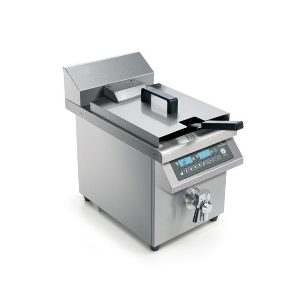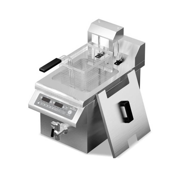 Profesionalna friteza iz nerjavečega jekla z upravljanjem na dotik, hitrim segrevanjem in regulacijo temperature do 190 °C. Ima velik digitalni zaslon, časovnik do 120 minut ter zvočni alarm za nivo olja. Za varno uporabo poskrbijo zaščita pred pregrevanjem in samodejni izklop po 2 urah, čiščenje pa je enostavno zaradi priročne pipe za izpust olja. Samodejni sistem dvigovanja košar z nastavljivim časom omogoča konstantne rezultate brez stalnega nadzora.