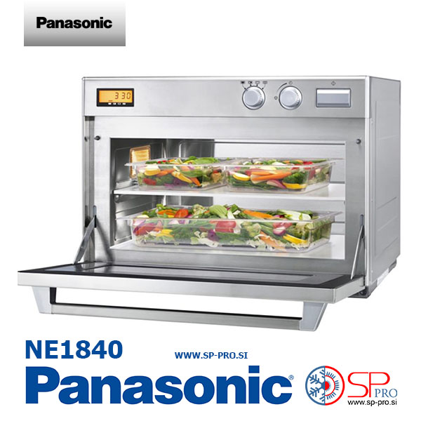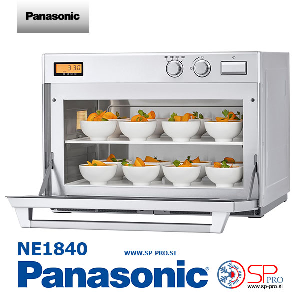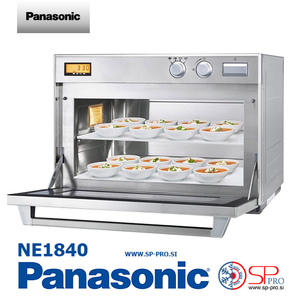 Mikrovalovna pečica PANASONIC NE 1840 je namenjena profesionalni uporabi. Mikrovalovna pečica ima velik in prostoren prostor, ki vsebuje steklokeramično polico. V notranjosti je dovolj prostora za dve GN 1/1, 4 krožnike ali 16 skled juhe v dveh nivojih. Pohvali se lahko s časovnikom, ki omogoča kuhanje do 60 min. Mikrovalovna pečica z močjo 1800 W ter 4 magnetroni omogoča hitro in enakomerno pogrevanje hrane. Ob koncu cikla nas opozori zvočni signal. Robovi mikrovalovne pečice so zaobljeni, tako da je vzdrževanje preprosto, zasluga pa gre tudi ohišju iz nerjavečega jekla – tako zunaj kot tudi znotraj mikrovalovne pečice. Mikrovalovna pečica PANASONIC NE1840 se uporablja v restavracijah, menzah, picerijah, priložnostnih jedilnicah, ipd.