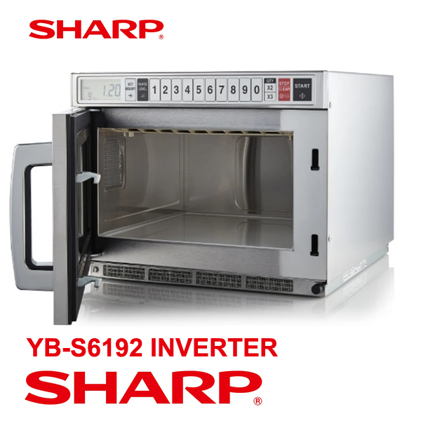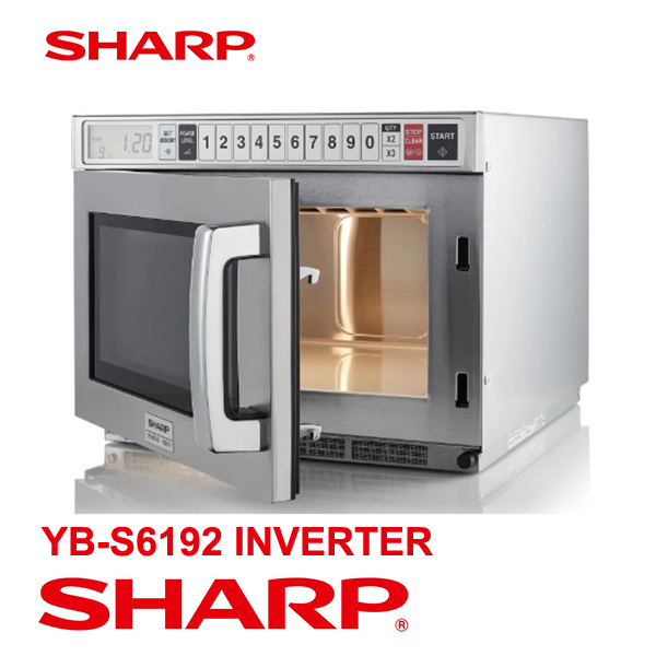 Mikrovalovna pečica SHARP YB-S6192 INVERTER je namenjena profesionalni uporabi. Mikrovalovna pečica ima 19 litrski prostor, ki vsebuje steklokeramično ploščo. Mikrovalovna pečica z močjo valov 1800 W, dvema magnetronoma ter 14 stopnjami moči mikrovalov. Mikrovalovna pečica omogoča 30 programov s prikazom na digitalnem ekranu. Ob koncu cikla nas opozori zvočni signal. Robovi mikrovalovne pečice so zaobljeni, tako da je vzdrževanje preprosto, zasluga pa gre tudi ohišju iz nerjavečega jekla. Mikrovalovna pečica SHARP YB-S6192 INVERTER se uporablja v restavracijah, menzah, picerijah, priložnostnih jedilnicah, ipd.