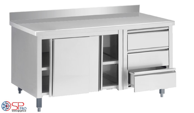 Nevtralna oprema iz našega prodajnega programa je izdelana iz visoko kakovostnega materiala inox AISI 304. Oprema je popolnoma razstavljiva, a zaradi čvrste konstrukcije izredno stabilna. Miza ima ojačano delovno ploskev dvoje drsnih vrat, tri predale ter zaščito zidu. Nevtralna oprema je enostavna za čiščenje in primerna za kuhinje, restavracije, šole, bolnišnice ter dopolnilno dejavnost.