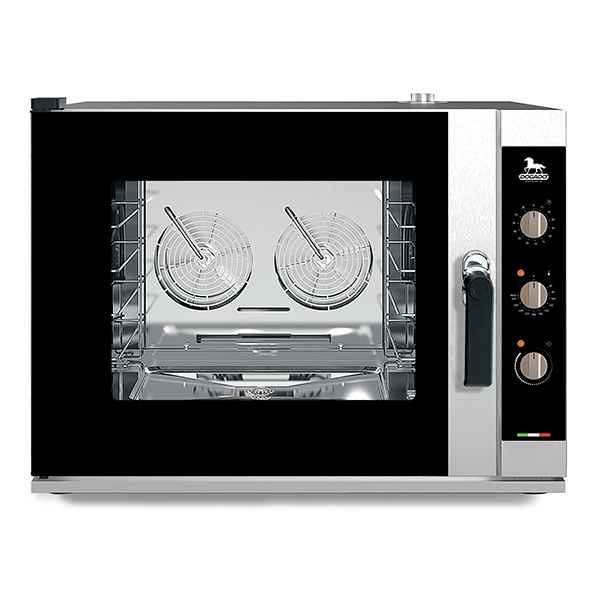 DOGADO peči združujejo visoko zmogljivost, zanesljivost in preprosto uporabo, kar jih naredi idealne za pekarne, slaščičarne, hotele, supermarkete, kavarne in trgovine s hitro prehrano. Zasnovane so za profesionalce, ki potrebujejo enakomerne in popolne rezultate pri vsakem peki. Omogočajo mešano pečenje s paro in konvekcijo, kar zagotavlja optimalno vlažnost pri peki kruha in peciva. Dvosmerni sistem vzvratnega ventilatorja skrbi za enakomerno porazdelitev toplote, medtem ko elektronska regulacija vbrizga vode omogoča popoln nadzor nad vlažnostjo. Logaritemski časovnik omogoča natančno nastavitev časa pečenja, halogenske luči pa zagotavljajo odlično vidljivost v notranjosti pečice. DOGADO je prava izbira za vsako profesionalno kuhinjo, kjer štejeta hitrost in natančnost.