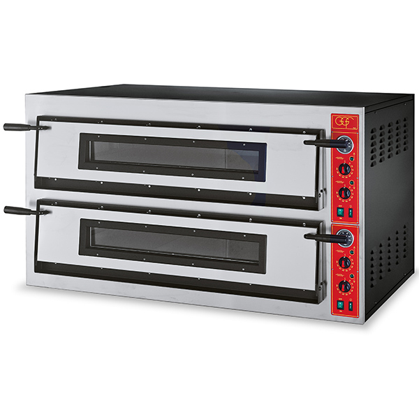 Električna peč za peko 12 pic premera do 36 cm omogoča neodvisen nadzor temperature zgoraj in spodaj preko mehanskih termostatov. Vgrajena je visokokakovostna mineralna izolacijska volna, ki zagotavlja odlično toplotno učinkovitost, kuhalna površina pa je izdelana iz ognjevzdržnega kamna. Peč je opremljena s pirometrom za natančno merjenje temperature ter notranjo halogensko osvetlitvijo za boljši nadzor med peko. Modeli E, F in FR spadajo med najkakovostnejše izdelke proizvajalca GGF in so zasnovani z vrhunskimi komponentami. Modela F in FR sta na voljo tudi z digitalnim termostatom za še natančnejšo regulacijo toplote.