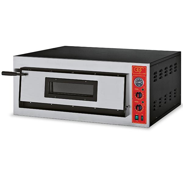 Električna peč za peko 4 pic premera do 36 cm omogoča neodvisen nadzor temperature zgoraj in spodaj preko mehanskih termostatov. Vgrajena je visokokakovostna mineralna izolacijska volna, ki zagotavlja odlično toplotno učinkovitost, kuhalna površina pa je izdelana iz ognjevzdržnega kamna. Peč je opremljena s pirometrom za natančno merjenje temperature ter notranjo halogensko osvetlitvijo za boljši nadzor med peko. Modeli E, F in FR spadajo med najkakovostnejše izdelke proizvajalca GGF in so zasnovani z vrhunskimi komponentami. Modela F in FR sta na voljo tudi z digitalnim termostatom za še natančnejšo regulacijo toplote.