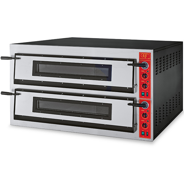 Električna peč za peko 18 pic premera do 36 cm omogoča neodvisen nadzor temperature zgoraj in spodaj preko mehanskih termostatov. Vgrajena je visokokakovostna mineralna izolacijska volna, ki zagotavlja odlično toplotno učinkovitost, kuhalna površina pa je izdelana iz ognjevzdržnega kamna. Peč je opremljena s pirometrom za natančno merjenje temperature ter notranjo halogensko osvetlitvijo za boljši nadzor med peko. Modeli E, F in FR spadajo med najkakovostnejše izdelke proizvajalca GGF in so zasnovani z vrhunskimi komponentami. Modela F in FR sta na voljo tudi z digitalnim termostatom za še natančnejšo regulacijo toplote.
