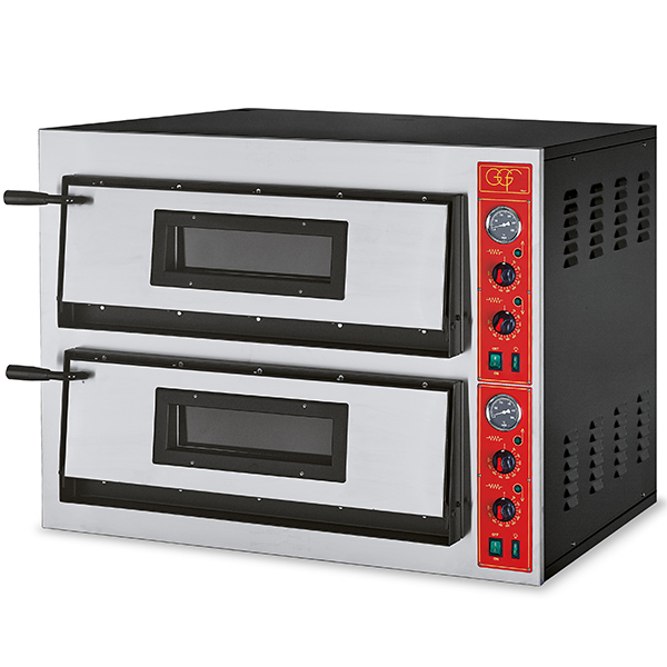 Električna peč za peko 8 pic premera do 36 cm omogoča neodvisen nadzor temperature zgoraj in spodaj preko mehanskih termostatov. Vgrajena je visokokakovostna mineralna izolacijska volna, ki zagotavlja odlično toplotno učinkovitost, kuhalna površina pa je izdelana iz ognjevzdržnega kamna. Peč je opremljena s pirometrom za natančno merjenje temperature ter notranjo halogensko osvetlitvijo za boljši nadzor med peko. Modeli E, F in FR spadajo med najkakovostnejše izdelke proizvajalca GGF in so zasnovani z vrhunskimi komponentami. Modela F in FR sta na voljo tudi z digitalnim termostatom za še natančnejšo regulacijo toplote.