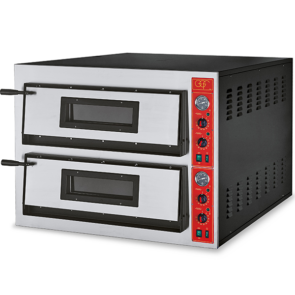 Električna peč za peko 12 pic premera do 36 cm omogoča neodvisen nadzor temperature zgoraj in spodaj preko mehanskih termostatov. Vgrajena je visokokakovostna mineralna izolacijska volna, ki zagotavlja odlično toplotno učinkovitost, kuhalna površina pa je izdelana iz ognjevzdržnega kamna. Peč je opremljena s pirometrom za natančno merjenje temperature ter notranjo halogensko osvetlitvijo za boljši nadzor med peko. Modeli E, F in FR spadajo med najkakovostnejše izdelke proizvajalca GGF in so zasnovani z vrhunskimi komponentami. Modela F in FR sta na voljo tudi z digitalnim termostatom za še natančnejšo regulacijo toplote.