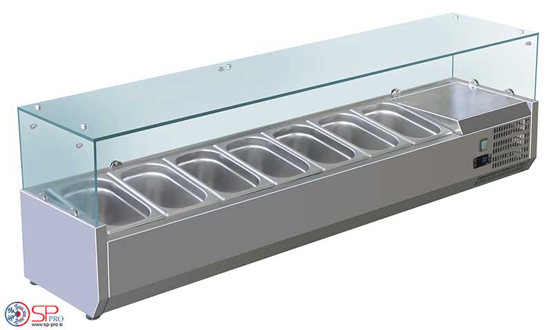 Hladilna vitrina ohranja sestavine za izdelavo pizze, hamburgerja ali sendviča popolnoma sveže. Izdelana je iz nerjavečega jekla, steklen zgornji del pa omogoča, da so sestavine vidne strankam. Hladilna vitrina ima statično hlajenje ter elektronsko regulacijo. Kapaciteta vitrine je 7 posod GN ¼ je nepogrešljiva v vseh pizzerijah, lokalih s hitro prehrano, hotelih, restavracijah ipd.