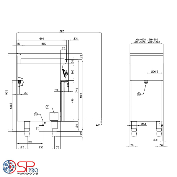 Konstrukcija izdelana iz nerjavečega jekla AISI 304, Scotch-Brite Satin Polish Finish, ki vključuje delovno površino debeline 1 mm. Štedilnik ima zaobljene robove, kromirane detajle. Gumbi so vodoodporni stopnje IPX5. Štedilnik ima nastavljive nogice. Profesionalni plinski štedilnik z 2