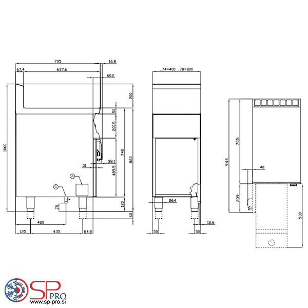 Plinska Friteza je izdelana iz nerjavečega jekla AISI 304 Scotch-Brite Satin Polish Finish, ki vključuje delovno površino debeline 2 mm, zaobljeni robovi ter kromiranimi detajli. Gumbi z vodoodporno stopnjo IPX5. Profesionalna friteza z dvojnim rezervoarjem vključuje košaro, pokrov, filter rezervoarja s košaro. Opremljena je z dvojnim termostatom za zaščito pred delovanjem in pregrevanjem. Gorilnik s piezoelektričnim vžigom in pilotsko lučjo, termostat in varnostni ventili s termoelementi. Vsi servisni deli so dostopni z enostavno odstranitvijo sprednje nadzorne plošče. Enostavno čiščenje rezervoarja z vrtljivim grelnim elementom. Friteza je opremljena z nastavljivimi nogicami. Aparat je dobavljen s šobami za pretvorbo LPG in zemeljskega plina.
