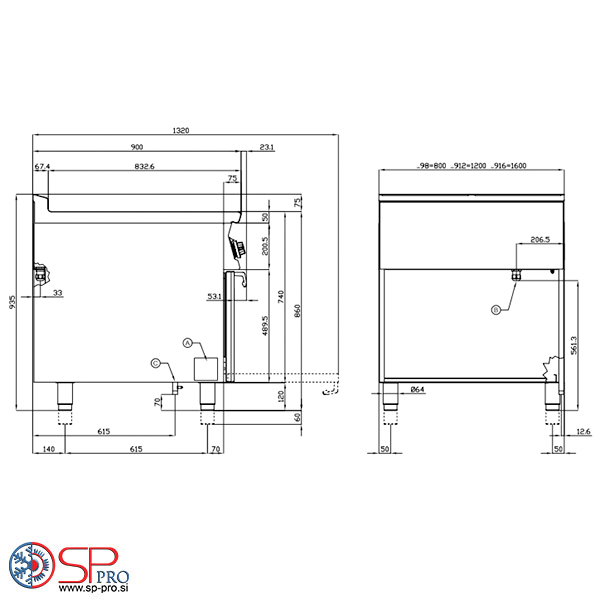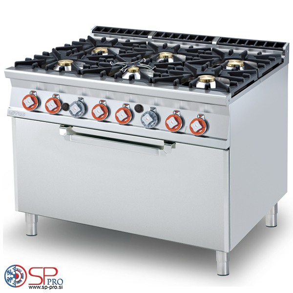 gorilniki in statično plinsko pečico. Gorilniki s pilotnim vžigom in varnostni ventili s termoelementi. Gorilniki z moduliranim plamenom, žari v ulitku železo. Prostorna pečica s širokimi vrati, piezoelektrični vžig, opremljen s plinskim žarom in časovnikom. Dimnik na zadnji strani, skupaj z varnostnimi napravami. Vsi deli so dostopni z enostavno odstranitvijo sprednje nadzorne plošče. Naprava se napaja z LPG in zemeljskim plinom.