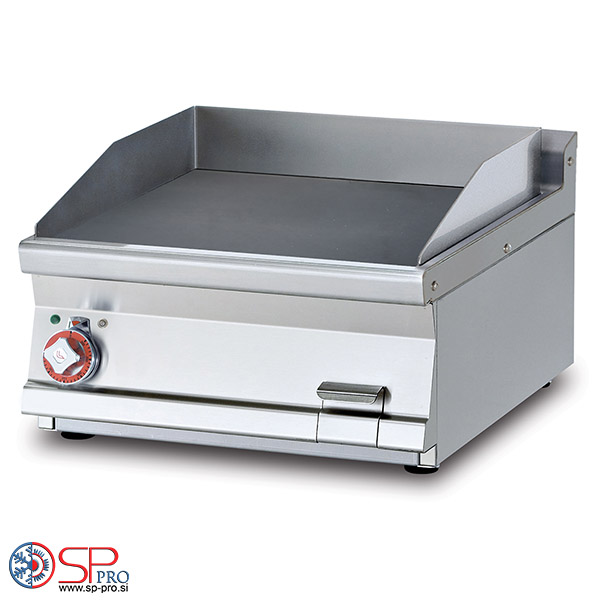 Namizni žar z gladko kromano kuhalno površino je izdelan iz nerjavečega jekla AISI 304, poliran s satenskim lakom, ki vključuje 2 mm debelo ploščo, zaobljene robove, kromirane podrobnosti in zadnjo stran. Ročaji so izdelani z vodotesno stopnjo IPX5. Naprava je opremljena tudi z nastavljivimi nogami. Opremljen je z enojnim termostatom. Visoka vzdržljivost in hitro segrevanje od 50 – 300°C. Žar ponuja odstranljivo posodo za tekočino/maščobo.